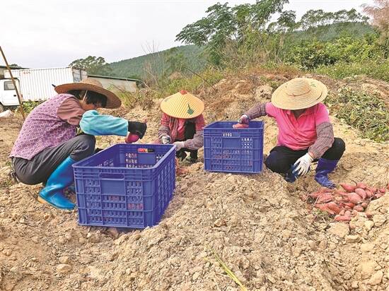 今年,广东省农业农村厅明确要求对撂荒地复耕实行双指标考核。其中包括2020年年底各地市上报的撂荒地面积要完成复耕复种50%以上;对连片15亩以上的撂荒地必须完成复耕。记者日前走访江门各地时获悉,当地正加紧对撂荒地进行复耕复种,其中在鹤山宅梧镇,日前就收获了撂荒地复耕后的首批红薯。按照农业部门要求,12月底前江门将全面完成15亩以上连片撂荒地复耕,并种植各种粮食作物。