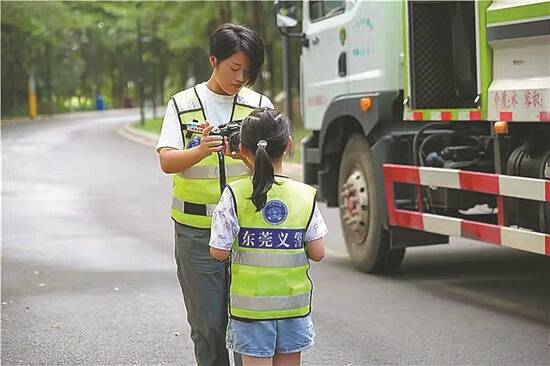 之后,王梅在松山湖公安分局的指导下,积极创新“东莞小义警”街头反诈模式,组织女儿及其同班同学,在熟悉的辖区社区商圈,推广使用“国家反诈中心”APP。由于女儿曾在课堂上分享过电信网络诈骗的案例以及反诈知识,所以同学和家长们都乐意周末和她一起上街头做宣传。孩子们活动的时候,王梅会跟着拍摄,“通过短视频平台可以把反诈知识传达给更多的人,看到这么小的孩子都懂得什么是电信网络诈骗,知道怎么保护自己不被骗,反诈效果会事半功倍”。