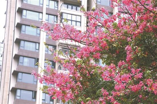 羊城晚报讯 近日,佛山街头的美丽异木棉竞相绽放,粉色的花朵点缀了一条条街、一处处公园、一个个路口。