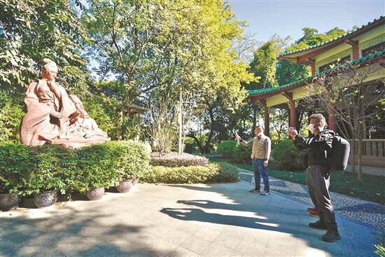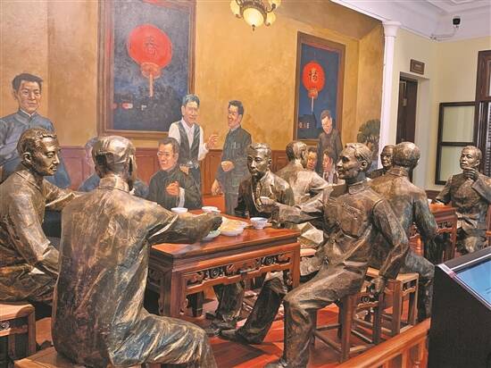 东湖旅店馆内通过雕像还原文化名人到惠吃饭的场景