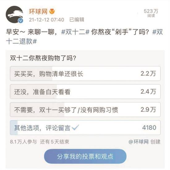 网络调查显示市民对“双十二”购买欲望明显低于“双十一”