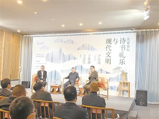 羊城晚报讯 记者林园摄影报道:20日下午,盐田区“诗书礼乐与现代文明”名家论坛在紫禁书院开讲。国务院参事、国家文化艺术智库特聘专家王京生,清华大学美术学院教授、博导王鲁湘,深圳市政协文化文史委主任尹昌龙同台论道。