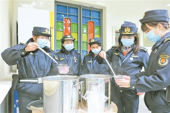 27日清晨,天色渐亮,塘厦城管分局工作人员用准备好的鲜姜、红枣等防寒温补材料研磨熬煮成热腾腾的姜茶,统一进行打包装车,再送往各个工作路段,在凛冽的寒风中为环卫工人送上温暖和关爱。