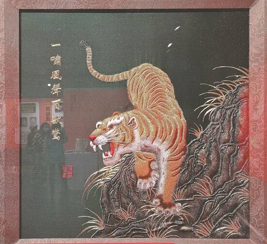 羊城晚报讯 记者黄宙辉、通讯员刁宵华摄影报道:1月11日,2021年“在粤”系列活动第四期:“虎力全开——壬寅虎年主题艺术展”在广东省文化馆一楼展览厅开幕。石湾陶塑、佛山剪纸、广绣、潮绣等岭南非遗关于“虎”年生肖主题的作品联袂展出,令观众眼界大开。