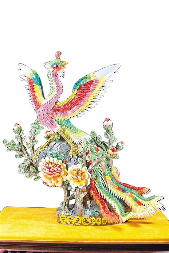 此外,随着嵌瓷作品表达内容和造型趋于多元和复杂化,有时候遇到极小的构件没办法直接用手来安装,就得提前设计构思好制作顺序,哪一部分先做哪一部分后做,做好小构件之后再用小巧的工具钳着这些构件,拼贴到主体造型上去。“这不仅是个体力活,更需要花费头脑和心思。”许少雄说。
