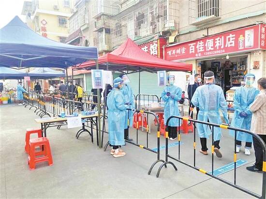 在甘坑社区,凉帽股份合作公司董事长张嘉乐在接到疫情通知后,组织公司13人一起参与甘坑社康检测点和凉帽三区检测点部署,投身进行核酸检测工作。他连续奋战24小时,在他身后,家中两个女儿近期肠胃不适只能留给家人照顾。