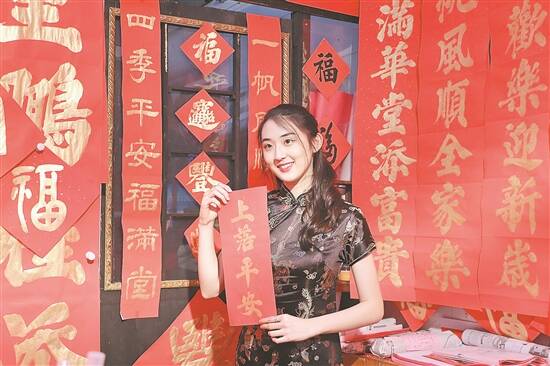 在采访中,记者遇到了不少到挥春街游玩的年轻人。市民韦小姐和朋友专程到此拍照,为了融入挥春街的喜庆氛围,她们还特意穿了旗袍。