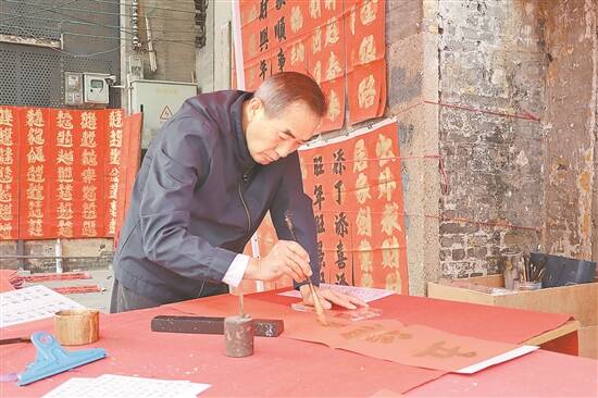 市民何女士是挥春师傅区杰文的老顾客,她告诉记者:“我找区师傅写挥春已经有好几年了,加了他的微信,每年都会提前问他在哪个位置设摊。”
