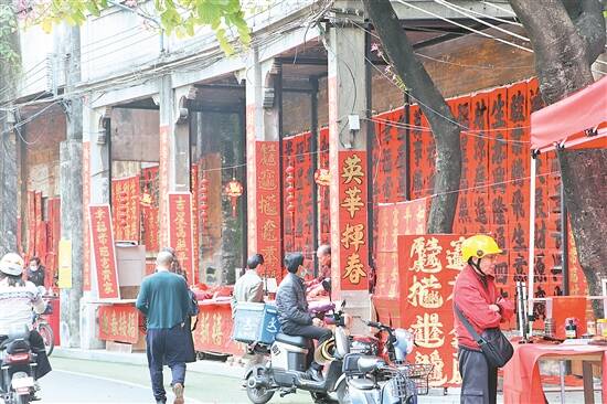 “一帆风顺全家欢,四季平安福满堂”“一年好景随春到,四季财源顺意来”“迎喜迎春迎富贵,接财接福接平安”……腊八刚过,挥春街就已经热闹了起来。道路两旁斑驳的骑楼下,一派喜气洋洋,一个个挥春摊位接连而摆,墙壁上、柱子上,到处都是红红的春联。