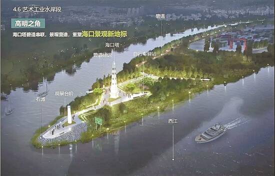 羊城晚报讯 记者梁正杰、通讯员明宣报道:近日,高明区公布西江干流碧道高明段最新规划编制情况,首次公开广明高速以北及高明大桥以南段规划。未来,广明高速以北河岸将着眼生态人文休闲定位,建设诗意岭南江滩;高明大桥以南则围绕海口塔,建设艺术工业水岸。目前,海口景观新地标——“高明之角”工程已经平整场地。