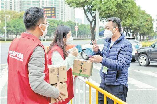 日前,上午10:30,在珠海南屏北山社区路口,两位身穿红马甲的志愿者站在封控围栏外,有序地保持着安全距离。约莫等了五分钟,封控区里有个身影小跑着靠近,向志愿者们挥了挥手。志愿者挺直了腰背,轻轻掂起手中的包裹。“您好,我们是格力地产的志愿者,这是您在互联网医院购买的药品,由医院发出,我们高格健康大药房帮助免费配送,麻烦您查看一下。”包裹跨过封控围栏递到了对方的手中。