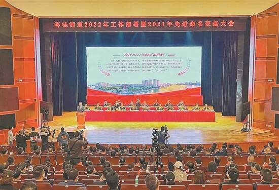 羊城晚报讯 记者曹月、通讯员容宣摄影报道:2月16日,顺德区容桂街道召开2022年工作部署暨2021年先进命名表扬大会。会议明确,2022年,容桂将全力攻坚治水大会战、激发经济新活力、提升城市创造力,打造产城共融的亲水智城,建设近悦远来的和美家园,为顺德奋力建设高质量发展先行示范区贡献容桂力量。