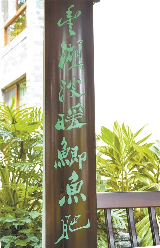 惠州西湖楹联“半径雨余香稻熟;丰湖波暖鲫鱼肥”(宋·佚名) 李运花 摄
