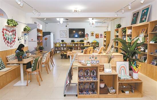 据了解,善雅书房·黄金屋秉着“一室多能”的理念,馆内设置有阅读区、文创专区、休闲餐饮区、“悦臻·优品便利超市”等。内有藏书1000余册,涵盖了农经、致富生产、花卉绿植养护、幼儿绘本、文学作品等。因地制宜,满足村民们的阅读需求。文创专区有斗门手绘明信片、斗门非遗书签……将优秀的传统文化融入到日常生活使用中,通过趣味方式传播斗门非遗文化。