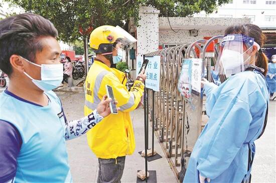 “我正好在这附近取餐,就看到群里说这里专门为外卖员设立了一个核酸检测点,顺道就过来把今天的核酸做了,很快,五分钟不到呢。”一位美团骑手开心地说道。