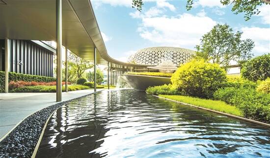 笔者走访了解到,在社区园林的设计打造上,各项目都别具匠心。例如中海·左岸东宸结合三江六岸的特点,中央花园以青云台造型建造,树木错落有致形成树阵,其中还有楼台流水,构造了一个可观、可赏、可游、可互动的幸福园林体系。粤港湾·樾光里则结合岭南传统建筑元素,以自然山水为内核打造自然健康的宜居生活社区园林。