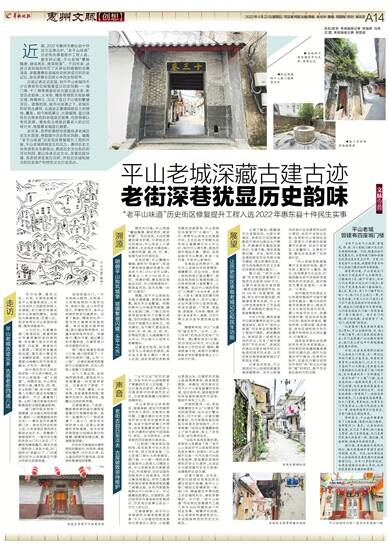 记者了解到,近年来,惠东已陆续对老城区的古建古迹进行修缮,其中十三巷门楼经过修缮焕然一新;南门井、棋盘围古井等均挂上历史建筑标识,得到妥善维护。不久前,“老平山味道”历史街区修复提升工程入选为2022年惠东县十件民生实事。随着项目实施,平山老城将有望焕发活力,形成独具特色的历史文化街区。