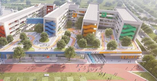 此前,南海区桂城街道三山环岛东路以西地段地块(军区农场二期地块)出让文件要求,地块A区须配建一所36班小学,用地面积不小于2.9万平方米。目前,由该地块开发商佛山万科邀请的设计团队,已对校园总体空间进行了规划设计,效果图显示了学校教学楼、篮球场、游泳池、风雨连廊等区域的教学空间、景观设计规划,分为学习探索空间、休憩游戏场所、运动拓展空间等区域,让每个年龄段的孩子都能活泼、自由、活力地绽放天性,在各个有趣的空间度过美好的小学时光。