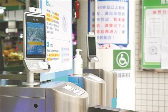 “新圩农贸市场设置了两个入口供消费者正常出入,早上的时间段人流量比较多,做好农贸市场疫情防控,体温检测、扫码通行、佩戴口罩至关重要,这个系统通过识别消费者的身份证、健康码等便可读取到其行程大数据,从而达到‘刷脸’进入的快捷操作。”新圩农贸市场管理方陈村镇康盈投资管理有限公司的相关负责人介绍道。