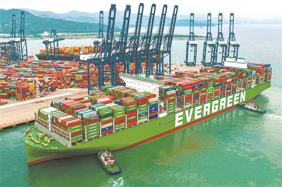 盐田港装载进出口货物的超大集装箱船 资料图