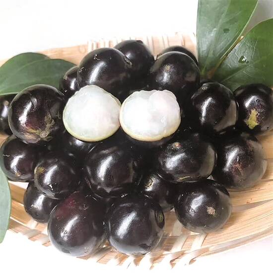 嘉宝果成熟时果肉呈半透明凝胶状,柔软多汁,具有多种芳香气味,口感独特,甜度在13到18度。嘉宝果果实富含维生素C、抗坏血酸、钙、铁和多种氨基酸等15种以上的高营养成分,营养价值高,因其果形和风味均似葡萄,故有“热带葡萄”之誉。