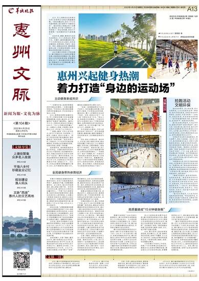 2022年惠州市政府工作报告提出,惠州要推动文化旅游体育繁荣发展,实施竞技体育精品工程,增设城乡公共空间体育设施,新增惠民球场100个,谋划建设体育主题公园,构建城市15分钟健身圈,着力打造“身边的运动场”。