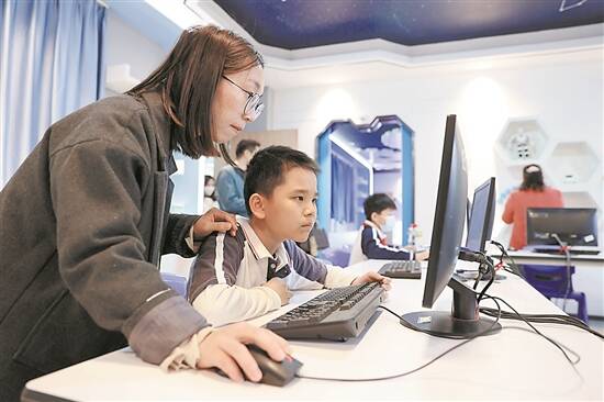 莞城中心小学分校计算机编程课堂 王俊伟 摄