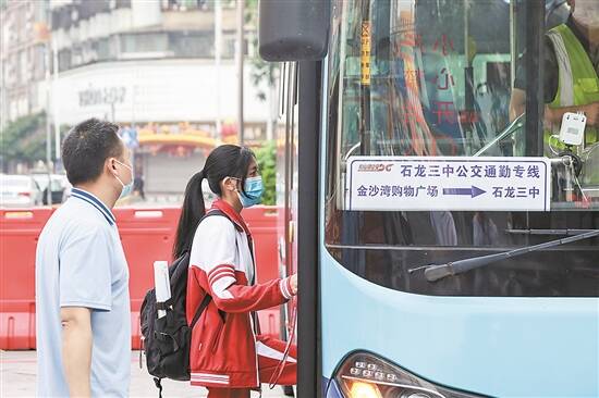 据了解,石龙三中是走读学校,每天上下学时间段学生通勤出行需求量大。为让学生安全、便捷、高效通勤上下学,石龙镇前期在对学生出行意向充分调研的基础上,结合实际制定石龙三中学生公交专线试点方案,首期开通2条循环路线,途经石龙三中、金沙湾购物广场、聚豪名轩等站点。