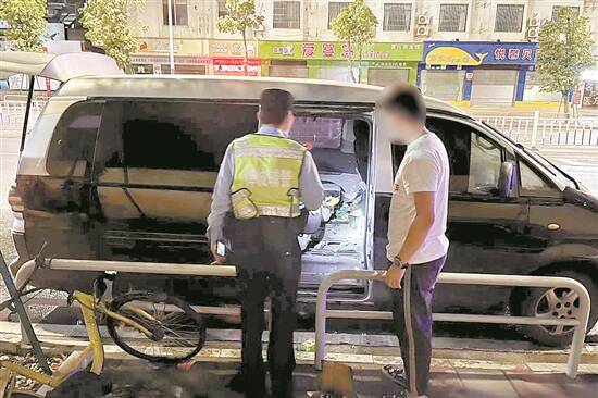 “阿sir,镇中路附近有台面包车冒烟起火啦……”4月9日深夜1时,接到目击群众报警后,公安民警联合消防人员火速到场,只见停放在路边的银色面包车后排座椅处不断冒出浓烟,还能看到火苗蹿起,但周围不见驾驶员的身影。由于考虑到车辆后尾厢存放着大量货物,为控制火情扩散,现场人员决定立马实施扑救。