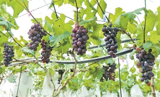 阳光下,绿叶葱茏之间,如宝石般的葡萄缀满藤蔓。杨光华和葡萄园的故事还在延续……
