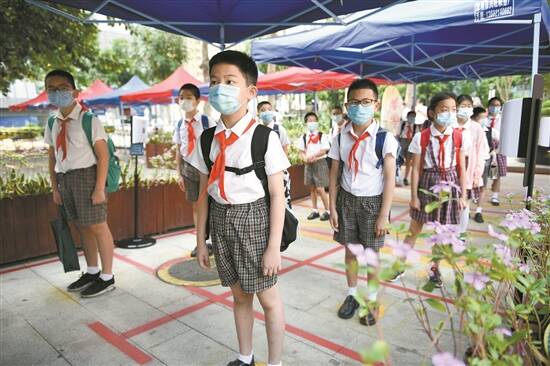 深圳景鹏小学同学排队有序进入校园