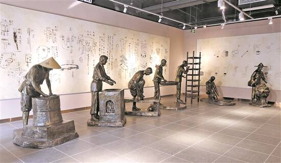 惠州侨文化博物馆内,雕像再现当年归侨在农场内的劳动场景