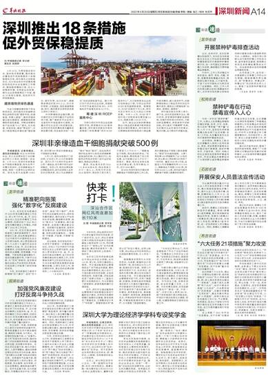 5月19日,为贯彻落实党中央、国务院决策部署,推动海关总署促进外贸保稳提质十条措施落地见效,深圳海关立足职能定位,充分结合深圳市统筹疫情防控和经济社会发展的工作要求,围绕稳规模保订单、优化口岸营商环境、支持新业态发展、提升企业获得感等四个方面,推出18条细化措施,促进深圳外贸保稳提质。