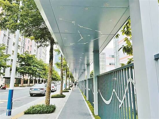 “今天忘记带伞出门,风雨连廊拯救了烈日下无处可躲的我。”在管委会工作的刘女士说道,“这段路经过改造后,路面很平,不会有积水,就连树池里面也栽种了满天星,体验感可以打满分!”