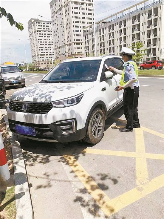 执勤交警对违停车辆进行处罚 图/珠海交警