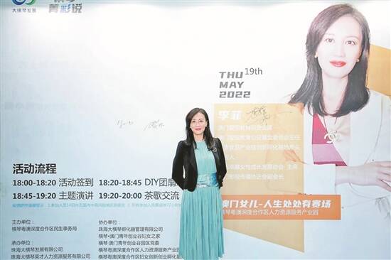 羊城晚报讯 记者钱瑜报道:5月19日,由横琴粤澳深度合作区民生事务局主办的第21期“横琴·菁彩说”活动在线上线下同步举行,澳门爱国教育总会主席、琴澳食品产业链创新孵化基地牵头发起人李菲亲述传奇人生,并分享她在横琴的创业故事。