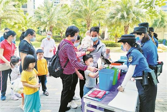 玉兰女子松山湖中队进小区宣讲垃圾分类知识