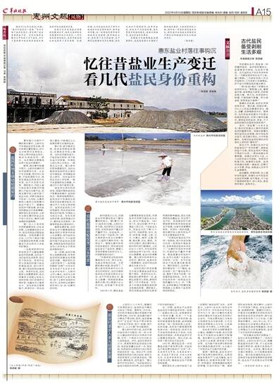 在惠州众多沿海盐业村落的发展演变中,盐民与盐田的关系随着时代变迁而变化,一代代盐民的身份地位,及其对盐业的认知也经历了多次重构。民国时期,大多数盐民的生产劳作只能通过与地主缔结契约、租用盐田开展,这一时期盐民劳作艰辛却依然生活困窘;新中国成立后,盐民有了自己的盐田,生产模式也随着时代变化调整,盐民生活水平得到提升;改革开放后,社会生产力迅速发展,盐民有更多的途径谋生,盐田日渐抛荒,盐业淡出历史舞台。