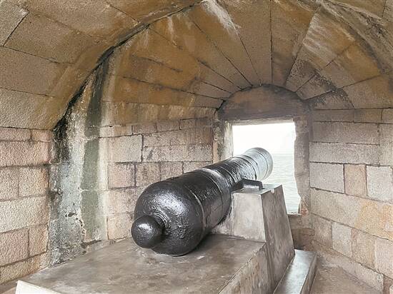 虎门炮台旧址内的大炮依旧正对着海面