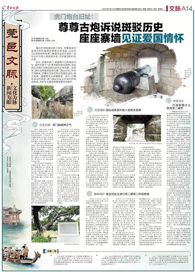 如何更好保护历史文化遗迹?采访中,鸦片战争博物馆副馆长孙广平告诉记者,根据《国务院办公厅关于审定虎门炮台爱国主义教育基地规划方案的复函》中“一次规划,分两期建设”的要求。近年来,在国家、省、市大力支持下,虎门炮台旧址已先后完成第一期和第二期第一阶段修缮,目前正在开展第二期第二阶段修缮。“根据规划,第二期第二阶段修缮工程将维修定洋炮台、蛇头湾炮台、临高台、广东水师提督署寨墙4处文物遗址。”孙广平说。