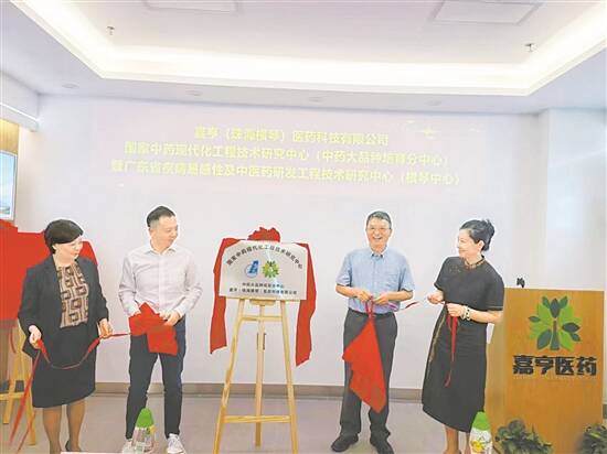 羊城晚报讯 记者钱瑜报道:近日,国家中药现代化工程技术研究中心、广东省疾病易感性及中药研发工程技术研究中心在横琴粤澳深度合作区(以下简称合作区)成立分中心,依托单位均为嘉亨(珠海横琴)医药科技有限公司(以下简称嘉亨医药)。
