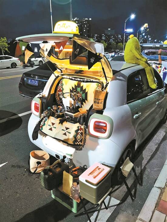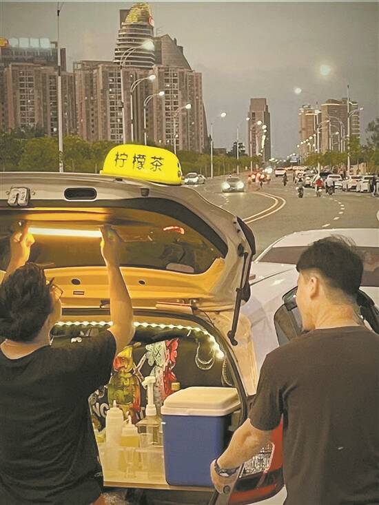 得闲饮茶”……近来,在惠州江北大云寺江边公园、新开河桥、东江沙公园等地,不时能看到一些年轻人利用汽车尾厢做起了柠檬茶、咖啡、提拉米苏等小摊生意——他们往往在夜间出摊,利用户外空间在小摊一旁摆放简易折叠桌椅,配上小夜灯装饰。