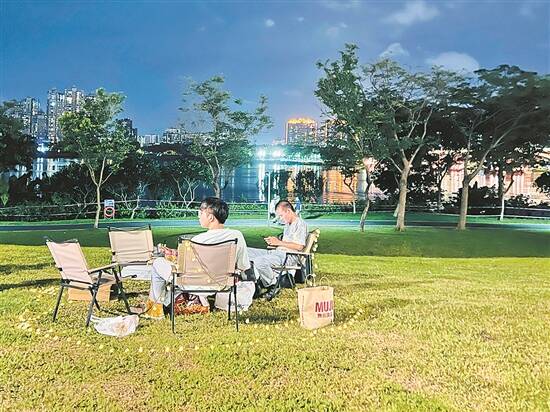 记者走访看到,不少市民还自带露营装备,泡茶的、烧烤的、吃水果的……草地上一派热闹景象。阿明说:“很多摊主都比较自觉,收摊时会做好清扫。但卫生问题、搭帐篷天幕破坏了草坪等问题依然存在。”