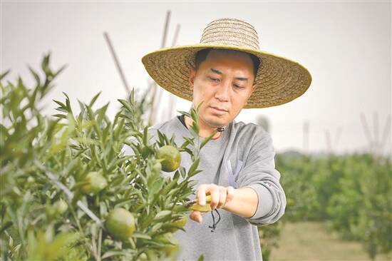 梁伟钊亲自为柑树剪枝 谭伟山 摄