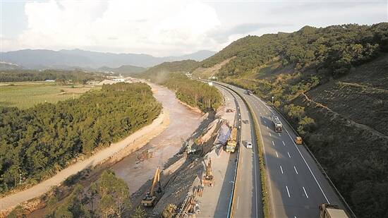 经过连续9天24小时不间断抢险奋战作业,6月27日,受强降雨影响实施双向交通管制的大潮高速大漳支线大东至枫朗路段恢复通行。