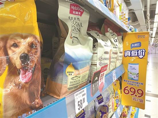 以OEM/ODM为主的模式,对品牌成长具有较大的制约性。记者走访也发现,广州大型商超货架上摆放的宠物食品以国外品牌为主,如沃尔玛天河棠下店售卖的国外品牌——伟嘉的产品有20多种,与之相比,即使是身为国内明星品牌的麦富迪也仅有寥寥几款在售。