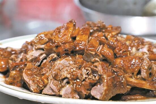 据了解,“碌”是粤语的叫法,意为“翻滚”,而“碌鹅”指的就是让鹅在锅里不停翻滚烹成的一道菜。师傅介绍,在整个烹制过程中,每隔一段时间就要掀开锅盖给鹅翻一次身,其间还要将汤汁不断淋在鹅身上,让鹅接受充分的“沐浴”,8-10斤的碌鹅烹制时间长达50分钟。