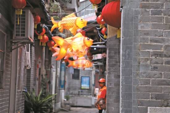 塔坡的巷子里,挂上了美丽的鱼灯
