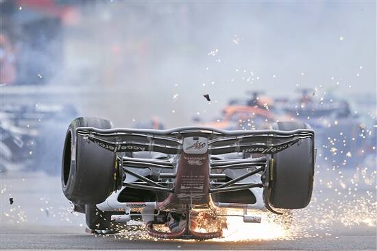 中国车手周冠宇在最近的F1大奖赛英国站比赛中死里逃生,惊心动魄的事故瞬间画面被无数次地重放——在起步阶段的多车相撞事故中,他的赛车被侧后方对手的赛车顶翻,倒扣在地面上高速滑行,最终翻过围栏,卡在了围栏和看台之间,赛车大面积损坏,这是一起场面上非常严重的事故。幸而不久之后传来消息,在被救出之后,经过紧急医疗评估,周冠宇无碍。