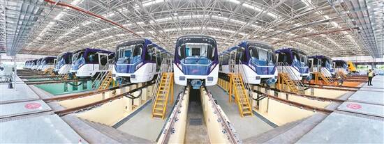 羊城晚报讯 记者杨苑莹,通讯员杨丽娟、朱戈辉摄影报道:7月6日,佛山地铁3号线列车和停车场首次亮相。截至6月底,3号线已完成29列车的出厂验收,其中22列车已运输到段(北滘停车场5列,逢沙停车场17列),并已完成了16列车的静态和动态调试。